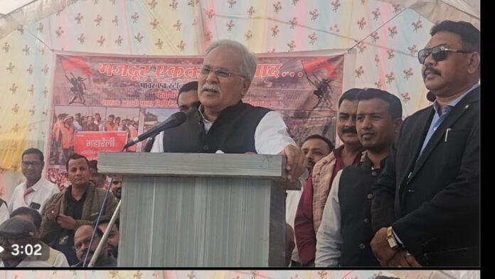 भूपेश बघेल ने कहा की जानकारी मिली है कि झारखंड, महाराष्ट्र के साथ अन्य राज्यों से मजदूरों को बुलाकर काम कराया जा रहा है .और मजदूरों को लाने का कार्य पुलिसकर्मी और अधिकारी कर रहे हैं… उन्होंने कहां की यदि मजदूरों को लाना बंद नहीं किया और तीन दिन के अंदर प्रबंधन ने मजदूरों के साथ समझौता कोई हल नही किया तो ..कांग्रेस उग्र आंदोलन करेगी ..उन्होंने मंच पर बैठे कांग्रेस के नए जिला अध्यश की और इशारा करते कहा बंजारे जी आन्दोलन के लिए तैयार रहे ,उन्होंने एलन किया की छत्तीसगढ़ राज्य की सीमा से लगे बॉर्डर पर कांग्रेस धरना प्रदर्शन करेगी और बाहर से आने वाले मजदूरों को छत्तीसगढ़ घुसने नहीं देगी..उन्होंने कहा जेल जाने से नही डरना है.उन्होंने सभा में बैठी महिलाओ की और इशारा करते कहा यदि मताए एक हजार के लालच में नही आती तो आज ये दिन देखना नही पड़ता ..भूपेश बघेल के साथ कांग्रेस नेता शैलेश नितिन त्रिवेदी पूर्व राज्यसभा सांसद छाया वर्मा, गिरीश देवांगन ,अनीता शर्मा, देवव्रत नायक ,सरपंच दिनेश वर्मा उधोराम वर्मा सहित मजदूर नेता मंच पर उपस्थित रहे