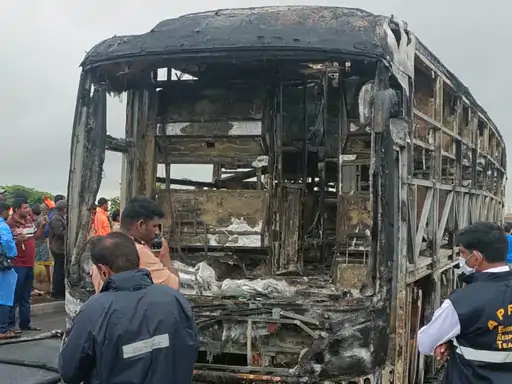 आंध्र प्रदेश के कुर्नूल में चिन्नाटेकुर के पास एक प्राइवेट बस में आग लग गई। न्यूज एजेंसी PTI के मुताबिक हादसे में 12 यात्री जिंदा जल गए। घटना आज सुबह लगभग 3:30 बजे हुई। NH-44 पर बाइक में टक्कर हुई। बाइक बस के नीचे घुस गई और फ्यूल टैंक से टकरा गई। इससे बस में तुरंत आग लग गई।हादसे में बाइक सवार शिवशंकर की भी मौत हो गई। बस हैदराबाद से बेंगलुरु जा रही थी।