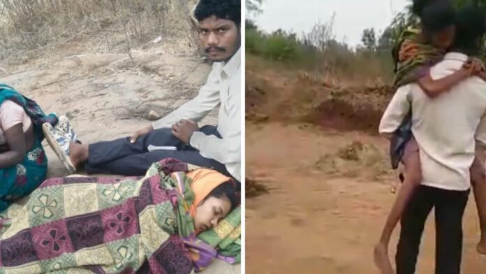 मनेंद्रगढ चिरमिरी भरतपुर: बीमार पत्नी को एंबुलेंस तक पहुंचाने के लिए पति को पांच किमी तक पत्नी को कंधे पर ढोना पड़ा. घटना सरभोका के नावाडीह गांव की है. पंडो जनजाति की महिला उर्मिला को प्रसव पीड़ा हुई. गांव में सड़क नहीं होने के चलते एंबुलेंस गांव तक नहीं पहुंच पाई. मजबूरन पति ने पत्नी को कंधे पर डालकर एंबुलेंस तक पहुंचाया. एंबुलेंस तक ले जाने में पति को पांच किमी तक का सफर ऐसे ही तय करना पड़ा. गांव वालों का कहना है कि इससे पहले भी इस तरह की तस्वीरें यहां से सामने आ चुकी हैं.