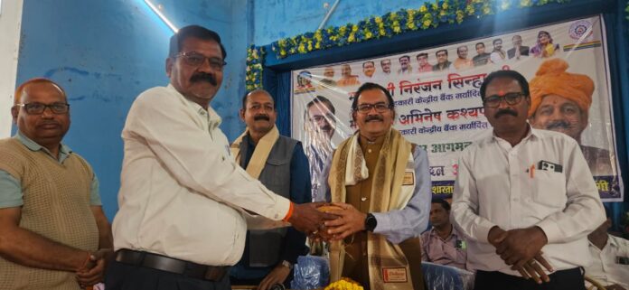 तिल्दा नेवरा-जिला सहकारी केंद्रीय बैंक मर्यादित रायपुर के अध्यक्ष निरंजन सिन्हा ने कहा धान खरीदी में किसानों को किसी भी तरह की असुविधा न हो। किसी भी कार्य को लेकर अगर किसान के कार्यों में दिक्कतें आ रही हो तो जरूर बताए। भाजपा की सरकार किसानों की अहित नहीं होने देगी। किसान जिला सहकारी बैंक से ऋण लेकर अधिक से अधिक मुनाफा ले सकता है आज किसान समृद्ध की ओर है। जिला सहकारी केंद्रीय बैंक रायपुर के अध्यक्ष बनने के बाद उपा.अभिनेश कश्यप के साथ बुधवार को पहली बार दौरे पर तिल्दा पहुचे अध्यक्ष सिन्हा और उपाध्यक्ष कश्यप का नगर के अम्बेडकर भवन में सम्मान समारोह आयोजित कर कार्यकर्ताओं और सहकारी बैंक के ब्रांच मैनेजर समिति के अध्यक्ष और कार्यकर्ताओ ने उनका जोरदार स्वागत किया।