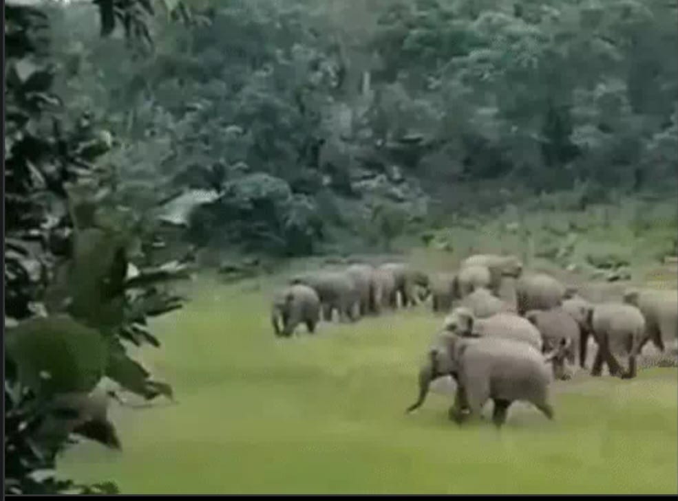 वीडियो में हाथी चिंघाड़ते और बेबी एलिफेंट दौड़ लगाते हुए खेलते नजर आ रहे हैं। इतनी बड़ी संख्या में हाथियों की मौजूदगी के बाद निगरानी बढ़ा दी गई है। तीन दिन पहले इसी दल ने बाझीवन क्षेत्र में करीब 30 किसानों की फसलों को नुकसान पहुंचाया था।