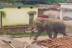 गांव में घुसा हाथी, गांव वाले भागकर पहुंचे स्कूल