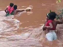 दंतेवाड़ा के एक गांव में नदी उफान पर होने से गांव के कुछ युवक महिलाओं और बच्चों को अपने कंधे पर उठाकर नदी पार करवा रहे हैं। हालांकि, यह खतरा उठाने के लिए प्रति व्यक्ति 30 रुपए भी ले रहे हैं। जिसका वीडियो भी सामने आया है।