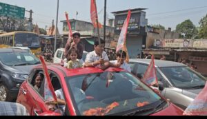मंदिर से शुरू हुई रैली, संत कंवर राम चौक से होते हुए, अग्रसेन चौक, सुभाष चौक, गांधी चौक पहुंची। यहां से रैली सासा होली, मावली मंदिर, दीनदयाल चौक होते हुए स्टेशन चौक पहुंची। यहां रैली का भव्य स्वागत किया गया। स्टेशन चौक सिंधी व्यापारी संघ के द्वारा यहां प्रसाद वितरण किया गया। उसके बाद रैली दीनदयाल चौक होते हुए हेमू कॉलोनी चौक पहुंची यहां भी रैली का स्वागत कर आतिशबाजी की गई।