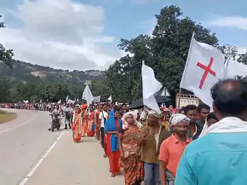 ईसाई आदिवासी महासभा के बैनर तले प्रदर्शनकारी पदयात्रा निकाल रहे थे। आरोप है कि जशपुर विधायक ने भगवान यीशु पर आपत्तिजनक बयान दिया है। इसके चलते वे भाजपा विधायक रायमुनी भगत पर FIR दर्ज करने की मांग कर रहे हैं।