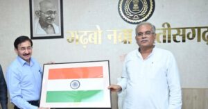 रायपुर। जाने-माने उद्योगपति और जिन्दल स्टील एंड पावर (जेएसपी) के चेयरमैन श्री नवीन जिन्दल के नेतृत्व वाले फ्लैग फाउंडेशन ऑफ इंडिया ने अपनी वेबसाइट के माध्यम से प्रत्येक देशवासी के मन में राष्ट्रप्रेम की भावना जगाने के लिए जो शपथ अभियान शुरू किया है, उसके प्रति छत्तीसगढ़ में भी उत्साह दिखने लगा है। इस सिलसिले में जेएसपी के प्रेसिडेंट श्री प्रदीप टंडन ने आज छत्तीसगढ़ के मुख्यमंत्री श्री भूपेश बघेल से मुलाकात कर उन्हें सम्मान स्वरूप राष्ट्रीय ध्वज भेंट किया।