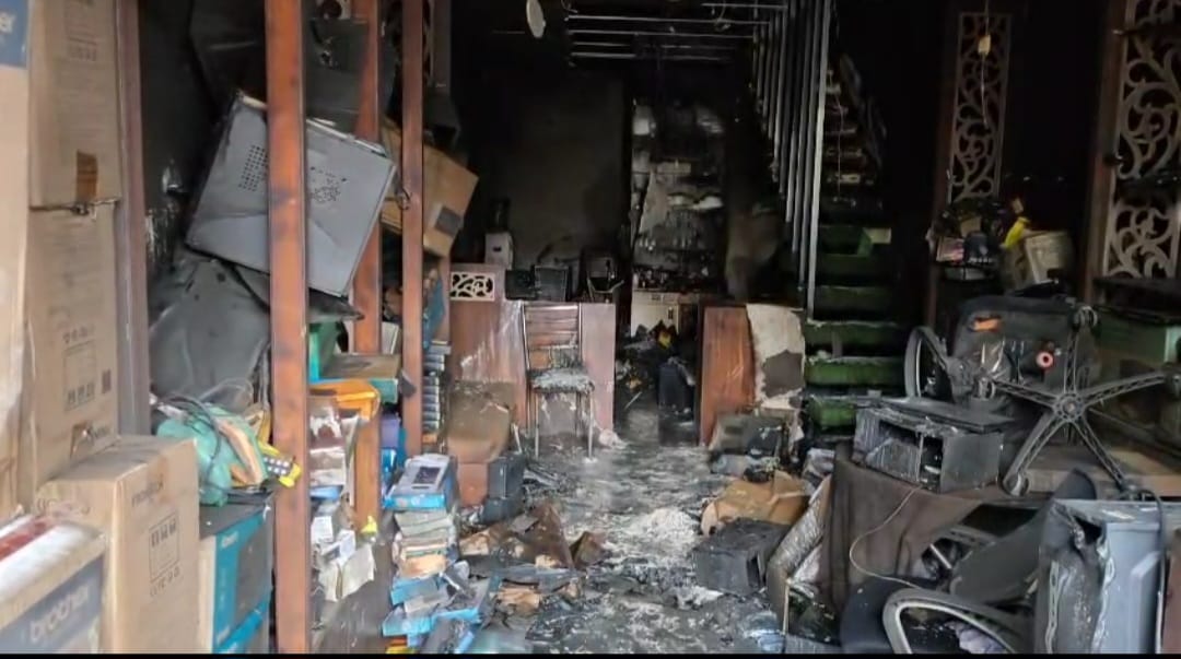 तिल्दा नेवरा। छत्तीसगढ़ के तिल्दा नेवरा के जनपद आफिस के सामने तिल्दा खरोरा मुख्य मार्ग पर स्थित तिन मंजिले  मनोरंजन कंप्यूटर दुकान में गुरुवार की मध्य रात्रि आग लग गई।इस आगजनी में दुकान में रखे लाखों रुपए के इलेक्ट्रॉनिक उपकरण जलकर खाक हो गए।