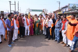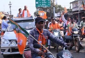 सांई मंदिर चौक पर बने शहर प्रवेश द्वार पर युवा नेता पूर्व नगर पालिका अध्यक्ष महेश अग्रवाल,के नेतृत्व में जोरदार स्वागत किया गया,पश्चात पूर्व विधायक प्रमोद शर्मा,मंडल अध्यक्ष सुरेश वर्मा, पार्षद विकास कोटवानी पार्षद रवि सेन, के नेतृत्व में विशाल मोटरसाइकिल रैली निकाली गई।जिसमे 1000 से भी अधिक मोटर साइकिलों के साथ कार्यकर्त्ता  शामिल हुए ,रैली खूबचंद बघेल चौक, दीनदयाल चौक, स्टेशन चौक, सिंधी कैंप,गांधी चौक होते हुए भाजपा कार्यालय नेवरा पहुंची। रैली के साथ चल रहे भाजपा प्रत्याशी का वर्मा समाज,ब्राह्मण समाज,निषाद समाज,सिंधी समाज,साहू समाज,राइस मिल एसोसिएशन,चैंबर ऑफ कॉमर्स के साथ विभिन्न सामाजिक संगठनों द्वारा स्वगत किया गया। लगभग दो घंटे के बाद रेली भाजपा कार्यालय पहुची जहा भाजपा कार्यकर्ताओ ने अपने प्रत्याशी एवं साथ आए सभी नेताओ का आतिशी स्वागत कर बृजमोहन अग्रवाल जिन्दा बाद.अबकी बार 400 पारके गगन भेदी नारों से पूरा इलाका गूंज उठा, भाजपाइयों की भीड़ देखकर प्रत्याशी बृजमोहन अग्रवाल सहित सभी अतिथि उत्साहित दिखे,