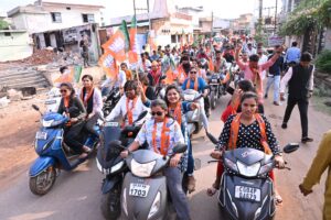 तिल्दा नेवरा में भाजपा कार्यकर्ताओ ने बृजमोहन के समर्थन में निकाली बाइक रैली:उमड़े कार्यकर्ता,पटी सड़कें,
