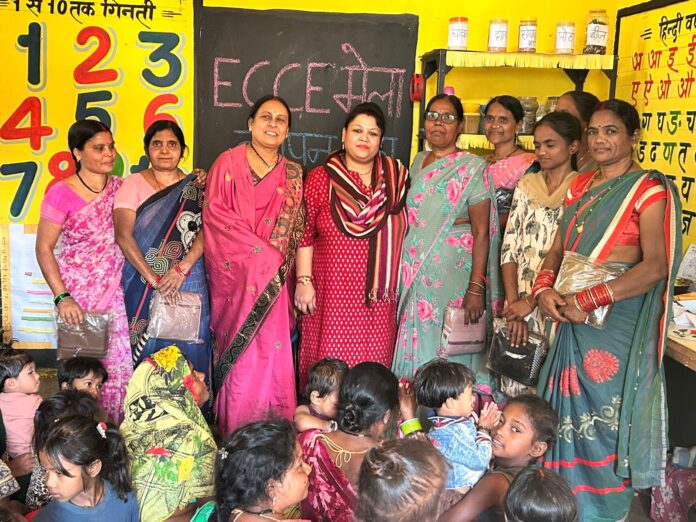 प्रारंभिक बाल्यावस्था देखभाल एवं शिक्षा (ईसीसीई) को बढ़ावा देने के उद्देश्य से आयोजित ECCE मेले के  आयोजन में वार्ड क्रमांक 21 की पार्षद श्रीमती रानी सौरभ जैन, पूर्व पार्षद वार्ड क्रमांक 20 सुधा चौबे, आंगनबाड़ी की साहिका कार्यकर्ता एवं गणमान्य जन अपने बच्चों को लेकर के वहां उपस्थित हुए! मेले के दौरान आंगनबाड़ी कार्यकर्ताओं द्वारा बच्चों एवं उनके पालकों को एक साथ शिक्षाप्रद एवं मनोरंजक गतिविधियों में सहभागी बनाया गया। इन गतिविधियों में 3 से 6 वर्ष आयु वर्ग के बच्चों के माता-पिता एवं अभिभावकों ने उत्साहपूर्वक भाग लेते हुए बच्चों की सीखने की प्रक्रिया को नजदीक से समझा।