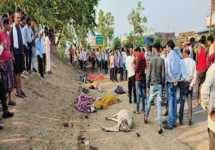 बताया जाता है कि तिलई गांव निवासी बुजुर्ग पुनाराम और उनकी बेटी और नातिन शादी समारोह में जाने निकले थे।सभी सड़क किनारे खड़े होकर बस का इंतजार कर रहे थे तभी खैरागढ़ की ओर से आ रहे तेज रफ्तार ट्रक ने चारों को चपेट में ले लिया ट्रक इतना तेज रफ्तार से पहुंचा कि हादसे का शिकार हुए लोगों को जरा भी भनक नहीं लग सकी। वे खुद को बचाने का प्रयास भी नहीं कर सके।और सभी की मौके पर ही मौत हो गई।पास ही मौजूद एक गाय भी इसकी चपेट में आई और उसकी भी मौत हो गई।पुलिस अधिकारियों ने बताया कि घटना के बाद ट्रक चालक वाहन लेकर मौके से फरार हो गया। सूचना मिलने के बाद घटनास्थल पर पहुंची पुलिस ने शवों को पोस्टमार्टम के लिए भेज दिया है। अधिकारियों ने बताया कि मामला दर्ज कर ट्रक चालक की तलाश की जा रही है। उधर हादसे के बाद आसपास मौजूद गुस्साए लोगों ने चक्काजाम कर दिया।