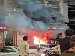 इंदिरा मार्केट में सुयश कलेक्शन जलाराम मिष्ठान भंडार के सामने उनकी बैग, बेल्ट और लेदर सहित अन्य प्रोडक्ट्स की शॉप है….।संचालक ललित कुमार चंदेल ने बताया कि वह अपनी दुकान रात लगभग 9.30 बजे बंद कर घर जाने की तैयारी कर रहे थे। इस दौरान उन्होंने अंदर से धुएं और आग की लपटें निकलते देखीं। उन्होंने दुकान का ताला खोल कर देखा तो पूरा शोरूम आग की चपेट में था। उन्होंने तुरंत फायर ब्रिगेड को सूचना दी।