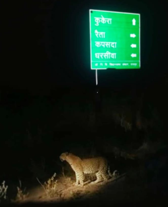 तेंदुए का एक फोटो सामने आया है.. जिसमें वह सड़क के बीचों-बीच बैठा हुआ दिखाई दे रहा, है इस फोटो को किसी बाइक सवार ने मोबाइल में कैद किया है।