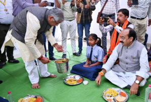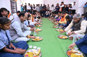उप मुख्यमंत्री अरुण साव ने न्योता भोज के दौरान बड़ी आत्मीयता और सहजता से बच्चों से बात की। उन्होंने अपने संबोधन में कहा कि प्रधानमंत्री नरेन्द्र मोदी ने पूरे देश में न्योता भोज अभियान चलाया है। यह प्रेरणा देने वाली योजना है। इससे बच्चों को सामूहिक रूप से भोजन करने का अवसर मिल रहा है।