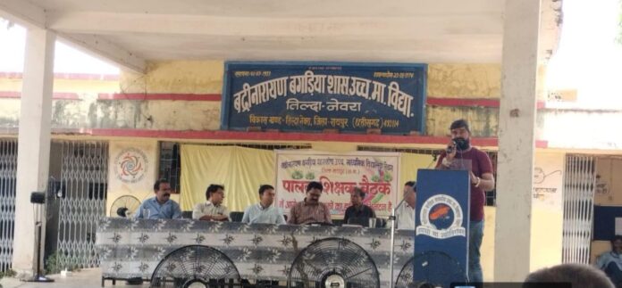 तिल्द्दा नेवरा..नई शिक्षा नीति की मंशा अनुरूप राज्य शासन के निर्देश पर बद्रीनारायण बगड़िया शासकीय उच्चतर माध्यमिक विद्यालय नेवरा में गुरुवार को शिक्षक मेगा बैठक का आयोजन किया गया।जिला पंचायत रायपुर के सीईओ कुमार विश्वरंजन ने कहा की जागरूक पालक बच्चों के बेहतर भविष्य का निर्माण करता है,जो समाज ज्यादा शिक्षित होता है। उसकी तररक्की भी उतनी ही होती है। शिक्षा के रास्ते से ही भविष्य के कई दरवाजे खुलते है। जिस पर चलकर एक सफल नागरिक का निर्माण होता है।