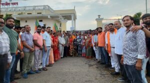 पीएम मोदी की मां का अपमान : भाजयुमो ने आरंग में राहुल तेजस्वी का फूंका पुतला