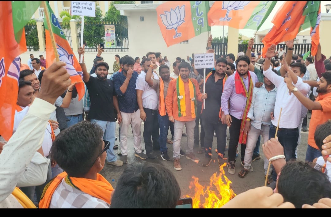 बिहार में राहुल गांधी की यात्रा के दौरान पीएम नरेंद्र मोदी की मां को लेकर की गई अभद्र भाषा का हर तरफ विरोध हो रहा है. सोमवार को भाजयुमो ने आरंग में विरोध जताते हुए कांग्रेस भवन मुख्यालय के बाहर जमकर प्रदर्शन कर राहुल गांधी एवं तेजस्वी यादव का पुतला फूंका.भारतीय जनता युवा मोर्चा के जिला ग्रामीण अध्यक्ष फ़नेंद्र वर्मा के नेतृत्व में किए गए प्रदर्शन में बड़ी संख्या में कार्यकर्ता शामिल हुए .