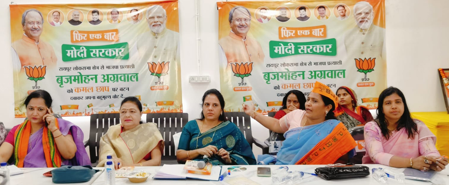 रायपुर लोकसभा प्रभारी संदीप शर्मा ने महिला मोर्चा की बैठक को संबोधित करते हुए कहा कि केंद्र की सरकार ने महिलाओं के लिए अनेक जनकल्याणकारी योजनाएं संचालित की है और उन योजनाओं का लाभ प्रदेश सहित पूरे देश की महिलाओं को मिल रहा है। लोकसभा के संयोजक अशोक बजाज ने कहा उज्ज्वला योजना से लेकर मातृत्व वंदना योजना सहित लोकसभा एवं विधानसभा चुनाव में महिलाओं को 33 प्रतिशत आरक्षण से लेकर पंचायत चुनाव में 50 प्रतिशत भागीदारी महिलाओं की होगी।