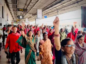 रायपुर स्टेशन में बैटरी कार चलाने के खिलाफ कुलियों का प्रदर्शन