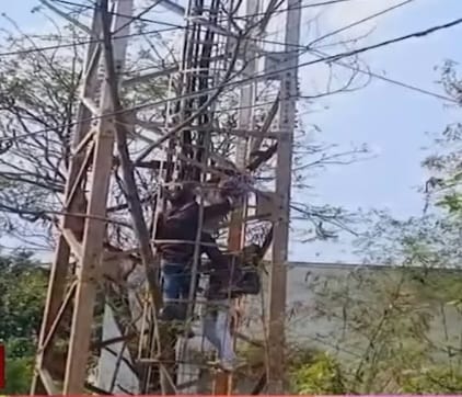 मोबाइल टावर में चढ़ा बुजुर्ग  फांसी लगाने की कोशिश