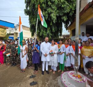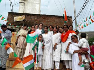 हेमू कॉलोनी चौक पर पार्षद विकास कोटवानी ने महिलाओं से फहराया तिरंगा