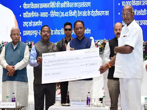 रायपुर-सोमवार को प्रधानमंत्री नरेंद्र मोदी ने बिहार के भागलपुर से पीएम किसान सम्मान निधि योजना की 19वीं किस्त जारी की। इस कार्यक्रम में वर्चुअली छत्तीसगढ़ के किसान और मुख्यमंत्री विष्णुदेव साय भी जुड़े। देशभर के 9.8 करोड़ किसानों के बैंक खातों में 22,000 करोड़ रुपये अंतरित किए गए। इनमें छत्तीसगढ़ के 25 लाख 95 हजार 832 किसान शामिल हैं। इन किसानों खाते में 599 करोड़ 38 लाख रुपए की सम्मान निधि भेजी गई है।