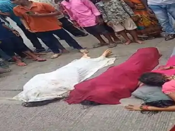अरपा नदी में अवैध खनन से बनी खाई में डूबने से 3 बहनों की मौत:आक्रोशित लोगों ने किया चक्काजाम