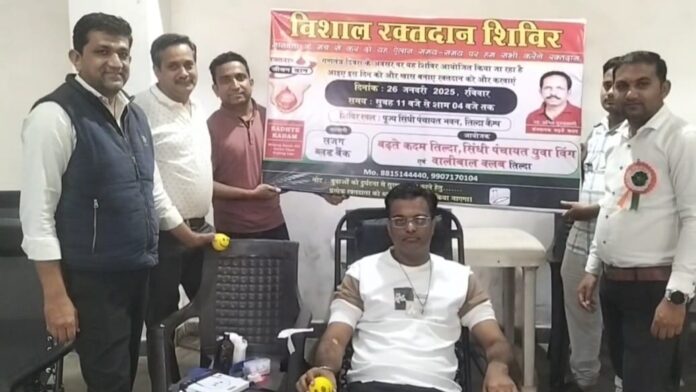 तिल्दा नेवरा -बढ़ते कदम तिल्दा,सिंधी पंचायत युवा विंग एवं बालीबाल क्लब तिल्दा नेवरा के संयुक्त तत्वाधान सजग ब्लड बैंक के सहयोग से पूज्य सिंधी पंचायत भवन तिल्दा नेवरा में रक्तदान शिविर लगाया गया। रक्तदाताओं ने दूसरों की जिंदगी बचाने के लिए रक्तदान किया।