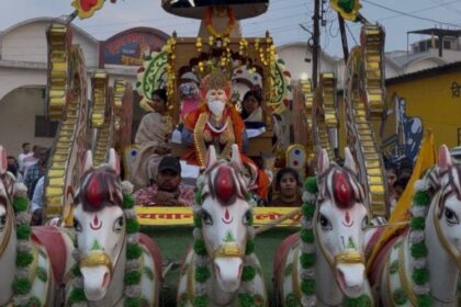 तिल्दा में भगवान झुलेलाल का जन्म उत्सव चेट्री चंड धूम धाम से मनया गया . सुबह बाईक रैली .शाम को भगवान की निकली गई शोभा यात्रा