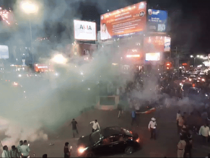 दुर्ग में टीम इंडिया की जीत पर आतिशबाजी