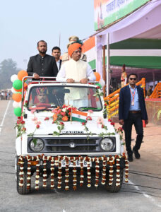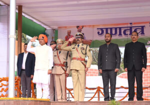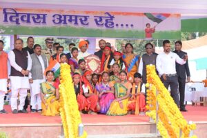 रायपुर-मुख्यमंत्री विष्णुदेव साय ने आज गणतंत्र दिवस के अवसर पर जगदलपुर के लालबाग में आयोजित मुख्य समारोह में ध्वजारोहण कर राष्ट्रीय ध्वज को सलामी दी।इस अवसर पर पुलिस,केंदीय अर्धसैनिक बल,नगर सेना,एनसीसी आदि की 14 टुकड़ियों के द्वारा सलामी दी गई।मुख्यमंत्री ने प्रदेशवासियों को गणतंत्र दिवस की बधाई और शुभकामनाएं दी। उन्होंने हर्ष और उल्लास के प्रतीक रंगीन गुब्बारे आसमान में छोड़े और प्रदेश के निरंतर विकास के लिए राज्य सरकार द्वारा किए जा रहे कार्यो, नीतियों, योजनाओं पर केन्द्रित जनता के नाम संदेश का वाचन किया।बस्तर जिले में गणतंत्र दिवस हर्षोल्लास के साथ मनाया गया।