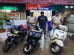 चोरी की गाड़ियों को बेचने ग्राहक की तलाश कर रहे युवक को पुलिस ने किया गिरफ्तार:चोरी की एक बाइक और 2 मोपेड जप्त