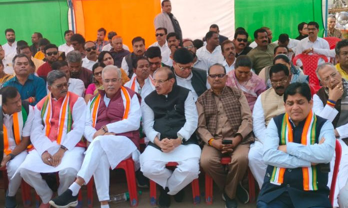 राजधानी के राजीव गांधी चौक पर धरना प्रदर्शन किया गया। प्रदर्शन में एआईसीसी की महासचिव व छत्तीसगढ़ प्रभारी कुमारी शैलजा, पीसीसी चीफ दीपक बैज, नेता प्रतिपक्ष डा. चरणदास महंत, पूर्व मुख्यमंत्री भूपेश बघेल, पूर्व गृहमंत्री ताम्रध्वज साहू, पूर्व मंत्री अमरजीत भगत, प्रेमसाय सिंह टेकाम, शिवकुमार डहरिया, विकास उपाध्याय, नगर निगम सभापति प्रमोद दुबे, राजेन्द्र तिवारी, धनेंद्र साहू सहित बड़ी संख्या कांग्रेसजन उपस्थित थे।
