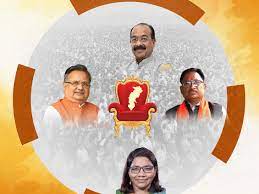 छत्तीसगढ़ में BJP की जीत के बाद मुख्यमंत्री और मंत्रियों के नाम को लेकर चर्चा जारी है। पुराने दिग्गजों के साथ महिला सांसद-विधायक भी सीएम और मंत्री बनने की रेस में हैं।आदिवासी या फिर ओबीसी कोटे से प्रदेश को नया सीएम मिल सकता है। ऐसा माना जा रहा है कि लगातार तीन बार मुख्यमंत्री रहे डॉ रमन सिंह मुख्यमंत्री को लेकर चल रही रेस से लगभग बाहर हो चुके हैं। बावजूद यह मानना गलत होगा कि डॉ रमन सिंह मुख्यमंत्री नहीं बनेंगे ?चर्चा यह भी है कि इस रेस में आरएसएस की पसंद के नाम को भी शामिल कर दिया गया है’इसके अलावा इस बात कि भी चर्चा है कि बीजेपी महाराष्ट्र के राज्यपाल रमेश बैस को भी वापस लाकर छत्तीसगढ़ की कमान दे सकती है।