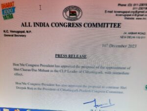 दीपक बैज बने रहेंगे प्रदेश अध्यक्ष