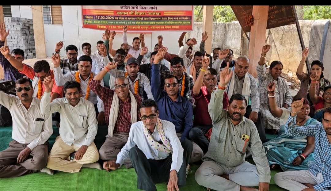 तिल्दा विकासखंड के सचिव जनपद पंचायत परिसर में हड़ताल पर बैठे हुए हैं। उनका कहना है कि जब तक हमारी एक सूत्रीय मांग पूरी नहीं होगी हमारी हड़ताल जारी रहेगी। सचिव संघ एक तरफ सरकार से औपचारिक घोषणा करने की बात कह रहा है.. वही कोई पहल नहीं होने की स्थिति में पंचायत सचिव संघ आंदोलन को दिल्ली तक पहुंचाने का मन बना लिए है। यदि एक सप्ताह के भीतर सरकार की ओर से कोई संकेत नहीं मिले तो सॉन्ग 28 अप्रैल को दिल्ली में प्रदर्शन के लिए कुछ करेगा।