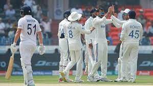 लंच तक इंग्लैंड का स्कोर तीन विकेट पर 108 रन था। लंच के ठीक बाद बेयरस्टो और रूट आउट हो गए। अक्षर ने बेयरस्टो को क्लीन बोल्ड किया। वह 37 रन बना सके। वहीं, जडेजा ने जो रूट को जसप्रीत बुमराह के हाथों कैच कराया। वह 60 गेंद में 29 रन बना सके। बेन फोक्स चार रन बनाकर अक्षर का दूसरा शिकार बने। वहीं, बुमराह ने भी विकेट का खाता खोलते हुए रेहान अहमद को विकेटकीपर केएस भरत के हाथों कैच कराया। इंग्लैंड को आठवां झटका जडेजा ने दिया। उन्होंने टॉम हार्टले को क्लीन बोल्ड किया। वहीं, अश्विन ने मार्क वुड और बुमराह ने स्टोक्स को क्लीन बोल्ड कर इंग्लैंड की पारी 246 रन पर समेट दी। आउट होने से पहले स्टोक्स ने 88 गेंद पर छह चौके और तीन छक्के की मदद से 70 रन बनाए। अश्विन और जडेजा ने तीन-तीन विकेट लिए, जबकि बुमराह और अक्षर को दो-दो विकेट मिले।