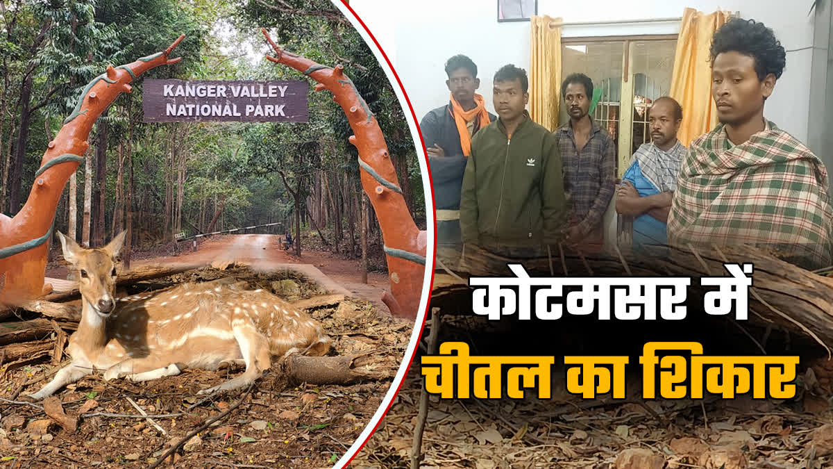 कोटमसर रेंज के डिप्टी रेंजर पितवास भारती ने बताया कि मुखबिरी से उन्हें चीतल के शिकार की सूचना मिली थी. शिकार की सूचना के बाद वन विभाग की उड़नदस्ता टीम जंगल में पहुंची. रात में लगभग 9 बजे जंगल के बीच लगभग 15 किलो के चीतल को 17 अलग-अलग हिस्सों में बांटा गया था. कुछ मांस पकाया जा रहा था.