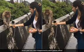 क्लिप की शुरुआत में वह सड़क के किनारे डिवाइडर पर बैठे एक बंदर को बिस्किट देती हुई दिखाई देती है. लेकिन, बंदर उसे अनदेखा करता है और आगे बढ़ जाता है. जल्द ही, कुछ और बंदर वीडियो में दिखाई देते हैं और वे समान व्यवहार करते हैं.