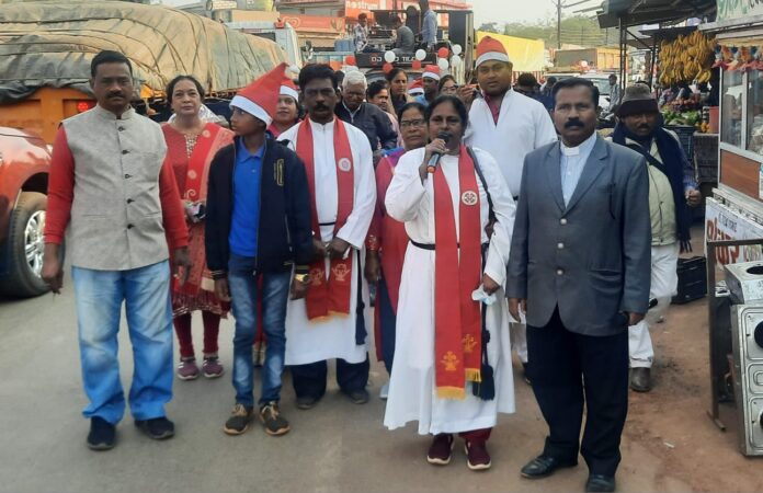 जुलुस निकलने के पहले दोनों चर्च सेंट थोमा चर्च और एजी चर्च में प्रार्थना हुई उसके बाद फास्टर सुषमा कुमार,फास्टर अजय मसीह के अगुवाई में जुलुस निकला गया,इस दौरान सेंटो क्लास के वेश में युवा टाफिया बाटते चल रहे थे,जुलूस के दौरान यीशु के जन्म झांकी बाइबल की घटनाओं पर आधारित झाकियाँ शामिल हुई, इस दौरान प्रभु यीशु की महिमा का गीतों की गूंज से वर्णन किया गया।