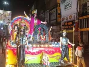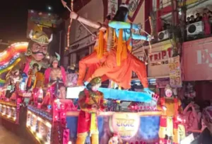 राठौर चौक से निकली कुंभकर्ण का वध करते हुए झांकी ।