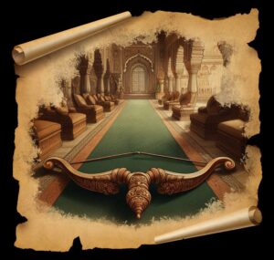 पीली चौकोनी टोपियां सिरों पर सुशोभित हैं, जिनके बीच-बीच में फूलों की कलियां बनाई हुई हैं. शंख के समान सुंदर गले में मनोहर तीन रेखाएं हैं, जो मानो तीनों लोकों की सुंदरता की सीमा को बता रही हैं. हृदयों पर गजमुक्ताओं के सुंदर कंठे और तुलसी की मालाएं सुशोभित हैं. उनके कंधे बैलों के कंधे की तरह ऊंचे तथा पुष्ट हैं, ऐंड (खड़े होने की शान) सिंह की-सी है और भुजाएं विशाल एवं बल की भंडार हैं. कमर में तरकस और पीताम्बर बांधे हैं. दाहिने हाथों में बाण और बायें सुंदर कंधों पर धनुष तथा पीले यज्ञोपवीत (जनेऊ) सुशोभित हैं. नख से लेकर शिखा तक सब अंग सुंदर हैं, उनपर महान् शोभा छायी हुई है. उन्हें देखकर सब लोग सुखी हुए. नेत्र एकटक (निमेष शून्य) हैं और तारे (पुतलियां) भी नहीं चलते. जनकजी दोनों भाइयों को देखकर हर्षित हुए. तब उन्होंने जाकर मुनि के चरणकमल पकड़ लिए. विनती करके अपनी कथा सुनाई और मुनि को सारी रंगभूमि (यज्ञशाला) दिखलाई. मुनि के साथ दोनों श्रेष्ठ राजकुमार जहां-जहां जाते हैं, वहां-वहां सब कोई आश्चर्यचकित हो देखने लगते हैं. सबने रामजी को अपनी-अपनी ओर ही मुख किए हुए देखा; परन्तु इसका कुछ भी विशेष रहस्य कोई नहीं जान सका. मुनि ने राजा से कहा- रंगभूमि की रचना बड़ी सुंदर है.