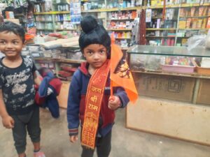 राम के रंग में इस कदर शहर रंग चुका है कि बच्चे से लेकर महिलाएं भी झंडा लेकर जय श्री राम के नारे लगा रही है , शहर में बचवानी परिवार की शादी में महिलाओं ने झंडा लेकर जय श्री राम के भजनों पर खूब ठुमके लगाए, इतना ही नहीं बारात में दूल्हा भी झंडालिए हुआ था ,,