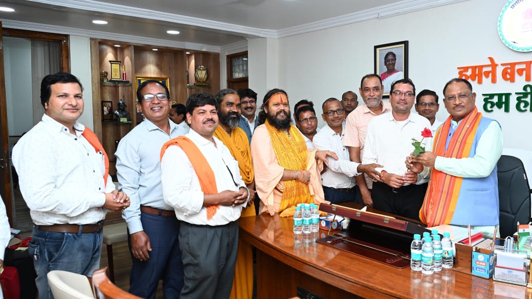रायपुर-छत्तीसगढ़ पशुधन विकास विभाग मे कार्य आधारित पर कार्य करने वाले छ.ग प्रशिक्षित गौ-सेवक कृत्रिम गर्भाधान कार्यकर्ता और मैत्री संघ ने छ.ग गौसेवा आयोग के संरक्षक संत बालक दास महाराज के नेतृत्व में छत्तीसगढ़ के विभिन्न जिलों से आए प्रतिनिधियो ने मुख्यमंत्री विष्णु देव साय से सौजन्य मुलाकात कर एक मांगपत्र और पुष्प भेंट किया.
