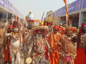 सुबह करीब 10.20 बजे पेशवाई की शुरुआत हुई। इसमें साधु-संत, महामंडलेश्वर शामिल थे। नागा साधुओं ने करतब दिखाते हुए शस्त्रों का प्रदर्शन किया। संत समागम स्थल से साधु-संत घोड़े रथ बग्गी में सवार होकर निकले। इसके बाद संगम तट पर पहुंचकर स्नान किया।