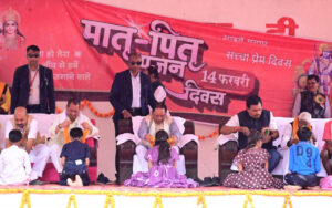 जशपुर-मुख्यमंत्री विष्णुदेव साय ने रविवार को जशपुर जिले के कुनकुरी विकासखण्ड के ग्राम कंडोरा में आयोजित मातृ-पितृ पूजन कार्यक्रम में मुख्य अतिथि के रूप में शामिल हुए। इस दौरान उन्होंने कहा कि माता-पिता की सेवा से बढ़कर कुछ भी नहीं है, इसलिए हम सभी को प्रतिदिन अपने माता-पिता का चरण छूकर आशीर्वाद लेना और उन्हें प्रणाम करना चाहिए। उन्हें खुश रखेंगे, तो जीवन सफल होगा।मुख्यमंत्री ने छत्तीसगढ़ में 14 फरवरी को मातृ-पितृ पूजन दिवस के रूप  मनाने की घोषणा भी की।