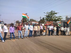तिल्दा नेवरा-प्रदेश कांग्रेस कमेटी के निर्देशानुसार और जिला कांग्रेस कमेटीरायपुर के आह्वान पर राष्ट्रपिता महात्मा गांधी के बलिदान दिवस पर तिल्दा में कांग्रेस ने मनरेगा बचाओ संग्राम और धान खरीदी की तारीख बढ़ाने की मांग को शुक्रवार को ब्लॉक स्तरीय धरना-प्रदर्शन के साथ ही चक्काजाम किया। इस दौरान कांग्रेसियों ने बीच सड़क पर प्रदर्शन किया और नारेबाजी करते रहे। प्रदर्शन के चलते वहां दोपहिया-चारपहिया वाहनों की कतारें लगी रहीं।तिल्दा हाईवे पर करीब आधे घंटे तक लोग जाम में फंसे रहे। प्रशासन ने समझाइश के बाद जाम समाप्त करवाया और मांगें उच्च स्तर तक पहुंचाने का आश्वासन दिया। बाद में राज्यपाल के नाम तहसीलदार को नाम ज्ञापन सौंपकर चक्काजाम स्थगित किया गया।