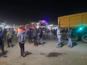 इस बात से ग्रामीण आक्रोशित हो गए और 10 ट्रैक्टरों में महिला पुरुष बच्चे बैठकर जनपद सदस्य स्वाती वर्मा के नेतृत्व में थाने पहुंच गए.. और सरपंच के विरुद्ध कार्रवाई करने की मांग को लेकर धरने पर बैठ गए.. थाने में पुलिस ने ग्रामीणों को बताया कि सरपंच के आवेदन पर किसी भी ग्रामीण पर जुर्म दर्ज नहीं किया गया है.. उसके बाद ग्रामीण सरपंच पर कार्रवाई करने की मांग करने लगे और थाने से बाहर निकलकर वह दीनदयाल चौक पर आगे और चक्का जाम कर दिए समाचार लिखे जाने तक ग्रामीण चौक के चारों तरफ धरने पर बैठे हुए थे..धरने में तामेश्वर वर्मा पूर्व सरपंच चेतन साहू केदार वर्मा लखनलाल साहू महेश साहू सेवाराम वैष्णव पुष्पा वर्मा गिरजा वर्मा श्रद्धा वर्मा जैन कुमारी कोतवाल द्रोपती मानिकपुरी केदारनाथ वर्मा श्रीमती वर्मा सरोजिनी सहित सैकड़ो की संख्या में ग्रामीण उपस्थित थे