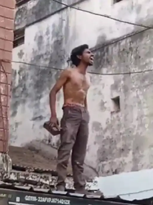 युवक ने लोगों पर बरसाए ईंट-पत्थर, गाड़ियों के कांच फोड़े,पुलिस पहुंची तो छत से लगाई छलांग; हाईटेंशन लाइन से झुलसा