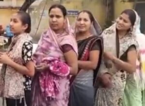 मतदान केंद्र के बाहर वोट करने के लिए इंतजार में बैठी महिलाएं